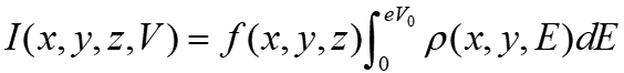 where x, y and z are tip position, M is the matrix element, and p is the LDOS. Assume that M can be taken out of integration, independent of the momentum k or energy E of the electron, and that the z-dependence of p can be separated as exp(-kz)p(x, y, E),